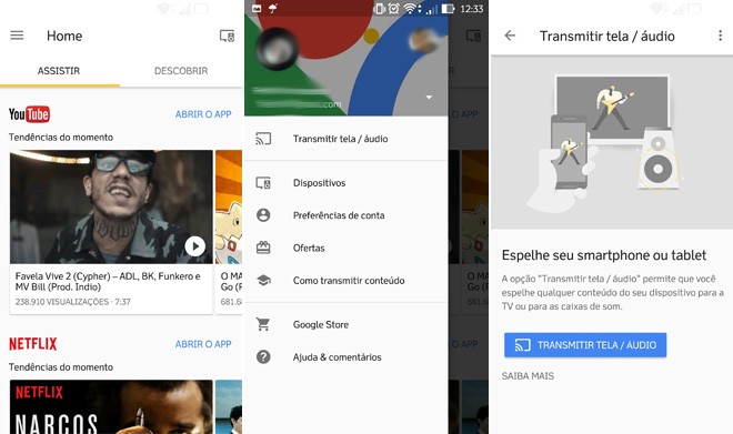 Selecione o dispositivo chromecast que deseja usar. . O título selecionado será mostrado na tv à qual o chromecast estiver conectado.